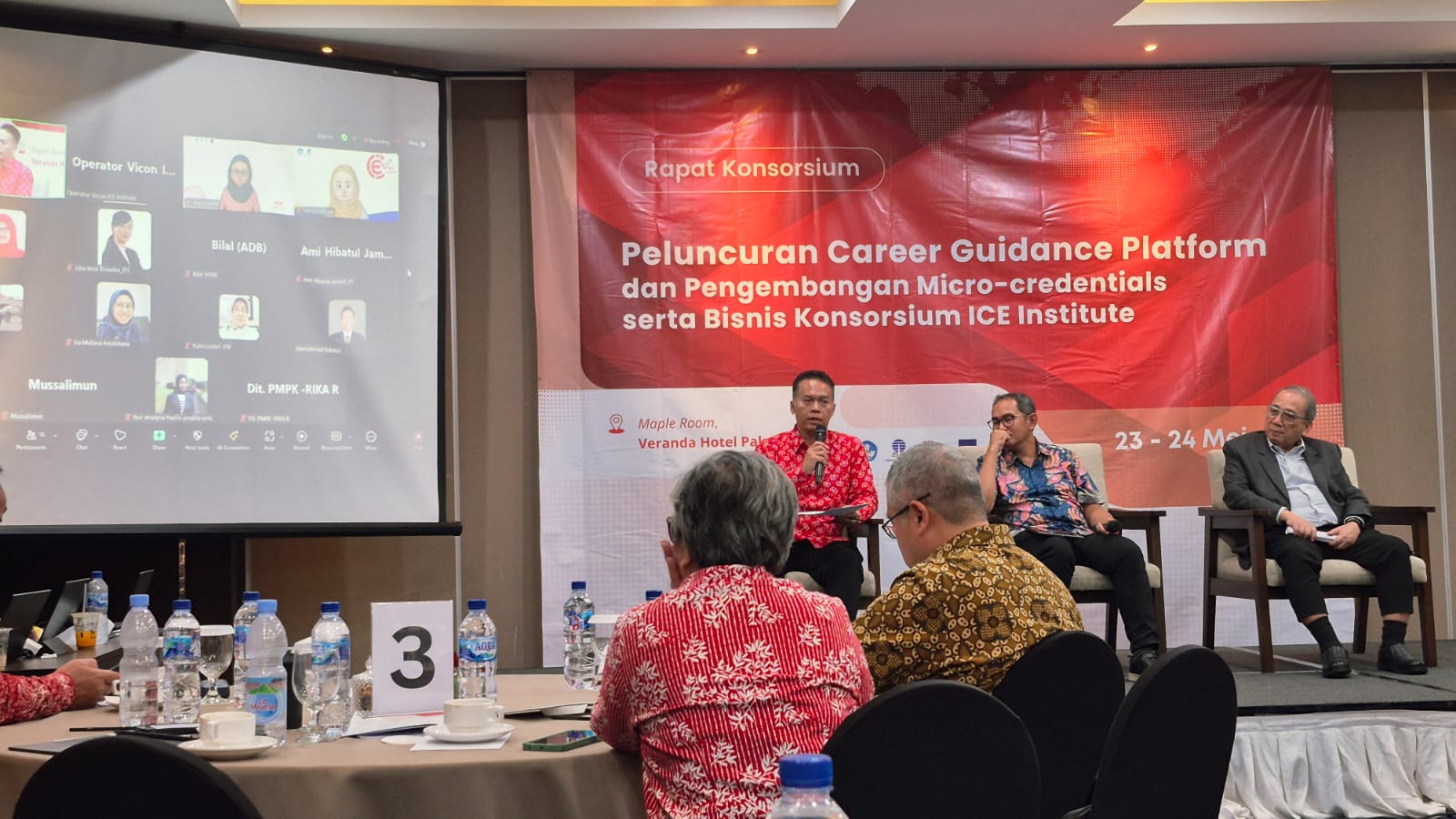 Dalam agenda rapat konsorsium ICEI yang berlangsung pada 23–24 Mei 2025, IPB University diwakili oleh Dr. Mafrikhul Muttaqin, S.Si., M.Si., Asisten Direktur Teknologi dan Digitalisasi Pembelajaran DTPTP sekaligus Koordinator IPB di dalam Program Konsorsium ICEI. Pertemuan ini membahas peluncuran Career Guidance Platform, pengembangan program Micro-credential, serta inisiasi penguatan model bisnis konsorsium ICEI.