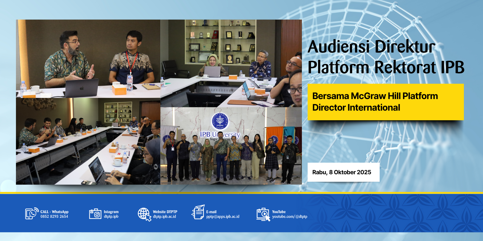 IPB University menerima kunjungan dari McGraw Hill Platform Director International dalam kegiatan audiensi strategis bertajuk “Penguatan Literasi Dasar Komputer dan Kesiapan Kerja Mahasiswa”, pada Rabu, 8 Oktober 2025, bertempat di Ruang Sidang Rektor 2, Gedung Rektorat IPB University, Kampus Dramaga.