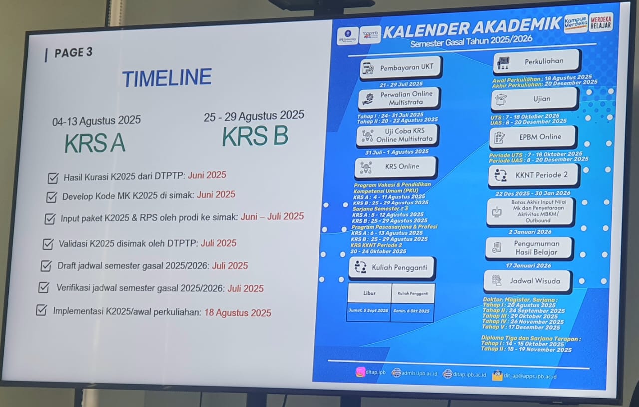 Bogor, 4 Juni 2025 – Direktorat Transformasi Pendidikan dan Teknologi Pembelajaran (DTPTP) IPB University menghadiri undangan Mini Lokakarya yang diselenggarakan oleh Fakultas Kedokteran IPB University, Prof. Dr. Ir. Yulin Lestari selaku direktur DTPTP yang juga menjadi narasumber pada kegiatan tersebut guna memberikan masukan untuk hasil rancangan kurikulum 2025 di Fakultas Kedokteran IPB University.